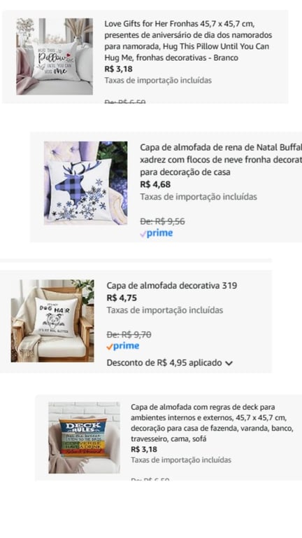 40% nas compras de 4 ou mais 60% na compra de 6 itens 80% na compra de 8 itens 💥Olha o precinho das capas de almofadas! ✨
